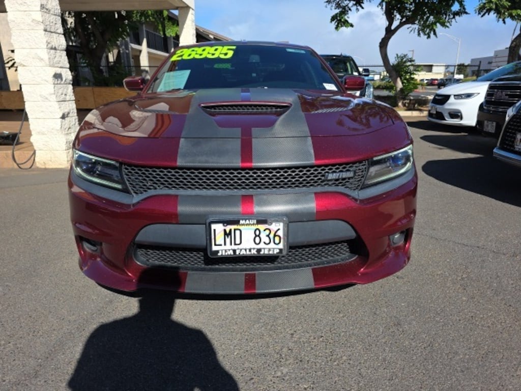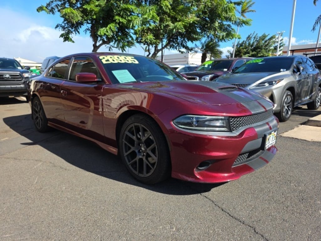 This Dodge Charger has many features and is well equipped including Beats Audio Group (10 Beats Premium Speakers w/Subwoofer and 552 Watt Amplifier), Daytona Edition Group, Navigation & Travel Group (5-Year SiriusXM Traffic Service, 5-Year SiriusXM Travel Link Service, GPS Navigation, Radio: Uconnect 4C Nav w/8.4" Display, SiriusXM Traffic Plus, and SiriusXM Travel Link), Quick Order Package 29S Daytona 340 (3-Mode Electronic Stability Control, Auto Adjust In Reverse Exterior Mirrors, Auto-Dimming Exterior Driver Mirror, Black 1-Piece Performance Spoiler, Black-Edged Premium Floormats, Body Color Exterior Mirrors, Bright Pedals, Carbonite Interior Accents, Daytona Decals Hood/Roof/Trunk, Daytona Front Grille Badge, Daytona I/P Badge, Daytona Perforated Suede/Leather Seats, Dodge Performance Pages, Driver & Passenger Lower LED Lamps, Exterior Mirrors w/Heating Element, Front Overhead LED Lighting, Gloss Black I/P Cluster Trim Rings, Heated 2nd Row Seats, Heated Steering Wheel, High Speed Engine Controller, Illuminated Rear Cupholders, Leather Trim Seats, Performance Steering Wheel, Power Driver/Passenger 4-Way Lumbar Adjust, Power Front Driver/Passenger Seats, Power Heated Memory Mirrors w/Man F/Away, Power Tilt/Telescope Steering Column, Radio/Driver Seat/Mirrors Memory, Rear Seat Armrest w/Storage Cupholder, Rhombi 2-Pc Wheel Center Cap, Satin Black Charger Decklid Badge, Security Alarm, Ventilated Front Seats, and Wheels: 20" x 9.0" Forged/Painted Aluminum), Super Track Pak (Black Grille, Body Color Fascias, Functional Hood Scoop, Lower Bodyside Bodycolor Cladding, MOPAR Cold Air Intake System, ParkSense Rear Park Assist System, Performance Suspension, and Projector LED Fog Lamps), Brazen Gold/Black Leather, 4-Wheel Disc Brakes, 6 Speakers, ABS brakes, Air Conditioning, All Speed Traction Control, Alloy wheels, AM/FM radio: SiriusXM, Anti-Lock 4-Wheel Disc HD Brakes, Anti-whiplash front head restraints, Apple CarPlay/Android Auto, Auto-dimming Rear-View mirror, Automatic temperature control, Brake assist, Bumpers: body-color, Compass, Delay-off headlights, Driver door bin, Driver vanity mirror, Dual front impact airbags, Dual front side impact airbags, Electronic Stability Control, Emergency communication system: Uconnect Access, Four wheel independent suspension, Front anti-roll bar, Front Bucket Seats, Front Center Armrest, Front dual zone A/C, Front fog lights, Front reading lights, Fully automatic headlights, Garage door transmitter: HomeLink, Heated door mirrors, Heated Front Seats, Heated front seats, Illuminated entry, Leather Shift Knob, Low tire pressure warning, Occupant sensing airbag, Outside temperature display, Overhead airbag, Overhead console, Panic alarm, Passenger door bin, Passenger vanity mirror, Power 4-Way Driver Lumbar Adjust, Power 8-Way Driver Seat, Power door mirrors, Power driver seat, Power steering, Power Sunroof, Power windows, Radio data system, Radio: Uconnect 4C w/8.4" Display, Rear anti-roll bar, Rear Armrest w/Cupholder Seat, Rear reading lights, Rear seat center armrest, Rear window defroster, Remote keyless entry, Speed control, Speed-Sensitive Wipers, Split folding rear seat, Spoiler, Sport Cloth Seats, Steering wheel mounted audio controls, Tachometer, Telescoping steering wheel, Tilt steering wheel, Traction control, Trip computer, Variably intermittent wipers, and Wheels: 20" x 8.0" Premium Painted Aluminum. Octane Red Pearlcoat 2017 Dodge Charger R/T Daytona Edition RWD 8-Speed Automatic HEMI 5.7L V8 Multi Displacement VVT Brazen Gold/Black Leather.