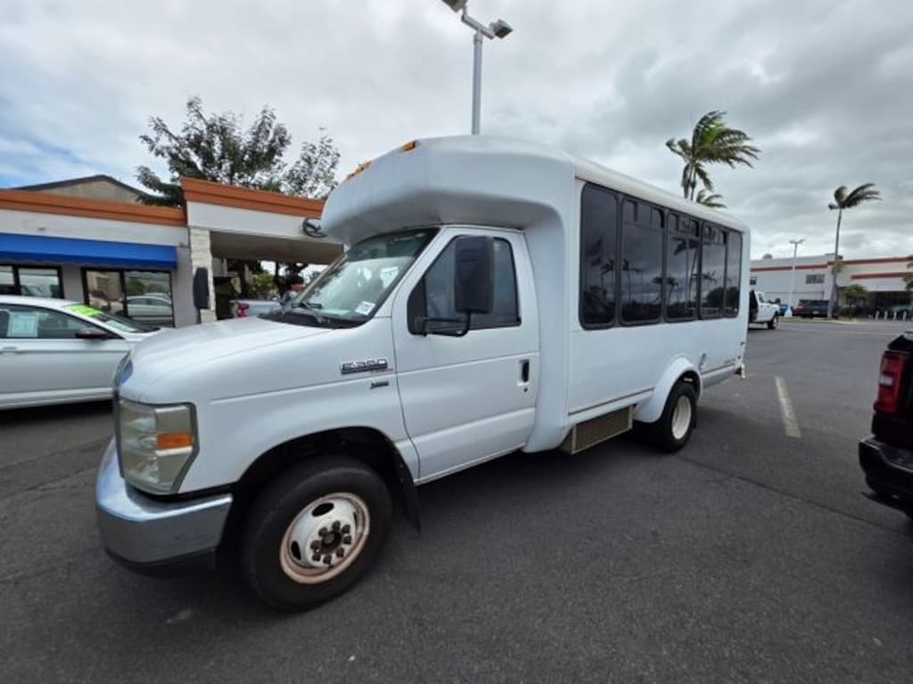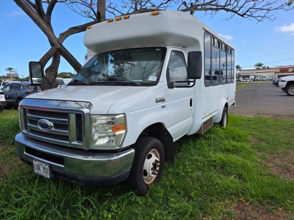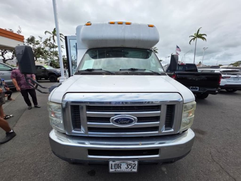 This Ford E-350SD has many features and is well equipped including 2 Speakers, 4-Wheel Disc Brakes, 4.10 Axle Ratio, ABS brakes, Air Conditioning, AM/FM radio, Auxiliary Fuel Port, Driver door bin, Driver's Seat Mounted Armrest, Dual front impact airbags, Dual High Back Buckets, Front anti-roll bar, Front Bucket Seats, Front wheel independent suspension, Passenger door bin, Passenger seat mounted armrest, Power steering, Tachometer, Tilt steering wheel, Variably intermittent wipers, Vinyl Seat Trim, and Voltmeter. Oxford White 2013 Ford E-350SD Cutaway RWD 5-Speed Automatic with Overdrive Triton V8 5.4L EFI Flex Fuel