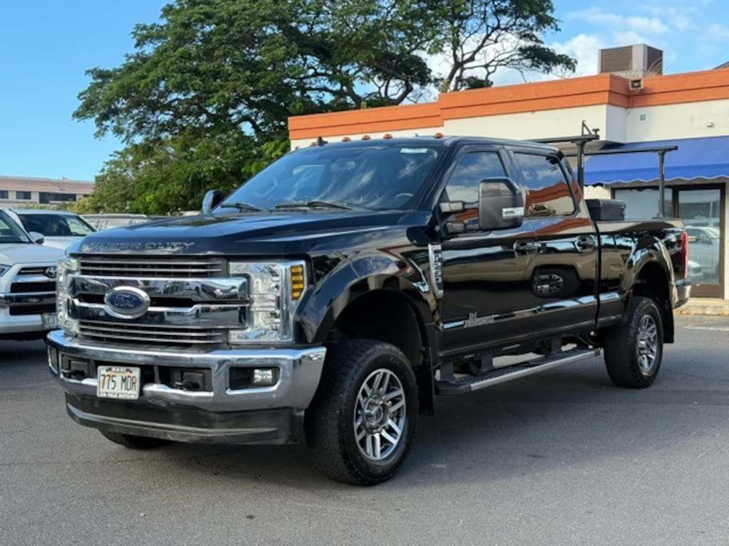 This Ford F-250SD has many features and is well equipped including GVWR: 10,000 lb Payload Package, Order Code 608A, 4WD, 10 Speakers, 110V/400W Outlet, 4-Wheel Disc Brakes, 6" Angular Chrome Step Bar, ABS brakes, Adjustable pedals, Air Conditioning, Alloy wheels, AM/FM radio: SiriusXM, AppLink/Apple CarPlay and Android Auto, Auto-dimming Rear-View mirror, Automatic temperature control, Brake assist, Bumpers: chrome, Compass, Delay-off headlights, Driver door bin, Driver vanity mirror, Dual front impact airbags, Dual front side impact airbags, Electronic Stability Control, Emergency communication system: SYNC 3 911 Assist, Exterior Parking Camera Rear, Extra Extra Heavy-Duty Alternator (240 Amp), Flow-Through Console, Front anti-roll bar, Front Bucket Seats, Front Center Armrest, Front dual zone A/C, Front fog lights, Front Leather Seating Surfaces 40/Console/40, Front reading lights, Fully automatic headlights, Heated door mirrors, Illuminated entry, Leather steering wheel, LED Roof Clearance Lights, Low tire pressure warning, Memory Power-Adjustable Pedals, Outside temperature display, Overhead airbag, Overhead console, Panic alarm, Passenger door bin, Passenger vanity mirror, Power door mirrors, Power driver seat, Power passenger seat, Power steering, Power windows, Radio data system, Radio: B&O Sound System by Bang & Olufsen, Rear Parking Sensors, Rear reading lights, Rear seat center armrest, Rear step bumper, Rear window defroster, Remote keyless entry, Security system, SiriusXM Radio, Speed control, Split folding rear seat, Steering wheel mounted audio controls, SYNC 3 Communications & Entertainment System, Tachometer, Tailgate Step & Handle, Telescoping steering wheel, Tilt steering wheel, Traction control, Trip computer, Turn signal indicator mirrors, Upfitter Switches (6), Variably intermittent wipers, Voice-Activated Navigation, and Wheels: 18" Bright Machined Cast Aluminum. Black 2019 Ford F-250SD Lariat 4WD 6-Speed Automatic 6.2L V8 EFI SOHC 16V Flex Fuel 4WD.