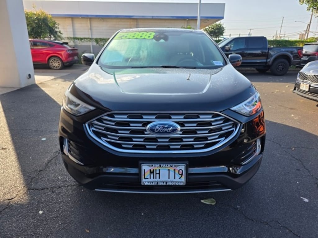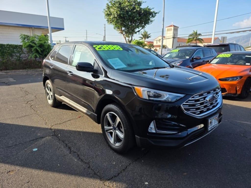 This Ford Edge has many features and is well equipped including Convenience Package (110V/150W AC Power Outlet, Perimeter Alarm, Power Liftgate, Remote Start System, Universal Garage Door Opener (UGDO), and Wireless Charging Pad), Equipment Group 201A, Ford Co-Pilot360 Assist+ (Adaptive Cruise Control w/Stop & Go, Connected Built-In Navigation, Evasive Steering Assist, and Lane Centering), 3.80 Axle Ratio, 4-Wheel Disc Brakes, 6 Speakers, ABS brakes, ActiveX Seating Material Heated Bucket Seats, Air Conditioning, Alloy wheels, AM/FM radio: SiriusXM with 360L, Auto High-beam Headlights, Auto-dimming Rear-View mirror, Automatic temperature control, Brake assist, Bumpers: body-color, Compass, Delay-off headlights, Driver door bin, Driver vanity mirror, Dual front impact airbags, Dual front side impact airbags, Electronic Stability Control, Emergency communication system: SYNC 4 911 Assist, FordPass Connect, Four wheel independent suspension, Front anti-roll bar, Front Bucket Seats, Front Center Armrest w/Storage, Front dual zone A/C, Front fog lights, Front reading lights, Fully automatic headlights, Heated door mirrors, Heated front seats, Illuminated entry, Knee airbag, Low tire pressure warning, Occupant sensing airbag, Outside temperature display, Overhead airbag, Overhead console, Panic alarm, Panoramic Vista Roof, Passenger door bin, Passenger vanity mirror, Power door mirrors, Power driver seat, Power passenger seat, Power steering, Power windows, Radio: AM/FM Stereo/MP3 Capable, Rear anti-roll bar, Rear reading lights, Rear seat center armrest, Rear window defroster, Rear window wiper, Remote keyless entry, SiriusXM w/360L, Speed control, Speed-Sensitive Wipers, Split folding rear seat, Spoiler, Steering wheel mounted audio controls, SYNC 4A w/Enhanced Voice Recognition, Tachometer, Telescoping steering wheel, Tilt steering wheel, Traction control, Trip computer, Variably intermittent wipers, Wheels: 18" Bright-Machined Aluminum, and Wheels: 18" Sparkle Silver-Painted Aluminum. Black 2021 Ford Edge SEL FWD 8-Speed Automatic EcoBoost 2.0L I4 GTDi DOHC Turbocharged VCT