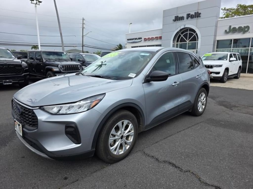 This Ford Escape has many features and is well equipped including Equipment Group 200A, 3.81 Axle Ratio, 4-Wheel Disc Brakes, 6 Speakers, ABS brakes, Air Conditioning, Alloy wheels, AM/FM radio: SiriusXM, AM/FM Stereo, Auto High-beam Headlights, Automatic temperature control, Brake assist, Bumpers: body-color, Compass, Delay-off headlights, Driver door bin, Driver vanity mirror, Dual front impact airbags, Dual front side impact airbags, Electronic Stability Control, Emergency communication system: SYNC 4 911 Assist, Exterior Parking Camera Rear, FordPass Connect, Four wheel independent suspension, Front anti-roll bar, Front Bucket Seats, Front Center Armrest, Front dual zone A/C, Front License Plate Bracket, Front reading lights, Fully automatic headlights, Illuminated entry, Knee airbag, Low tire pressure warning, Occupant sensing airbag, Outside temperature display, Overhead airbag, Overhead console, Panic alarm, Passenger door bin, Passenger vanity mirror, Power door mirrors, Power driver seat, Power Liftgate, Power steering, Power windows, Radio data system, Rear anti-roll bar, Rear reading lights, Rear seat center armrest, Rear window defroster, Rear window wiper, Remote keyless entry, Speed control, Speed-sensing steering, Speed-Sensitive Wipers, Split folding rear seat, Spoiler, Steering wheel mounted audio controls, SYNC 4, Tachometer, Telescoping steering wheel, Tilt steering wheel, Traction control, Trip computer, Unique Cloth Front Bucket Seats, Variably intermittent wipers, and Wheels: 17" Shadow Silver-Painted Aluminum. Silver Metallic 2024 Ford Escape Active FWD 8-Speed Automatic 1.5L EcoBoost
